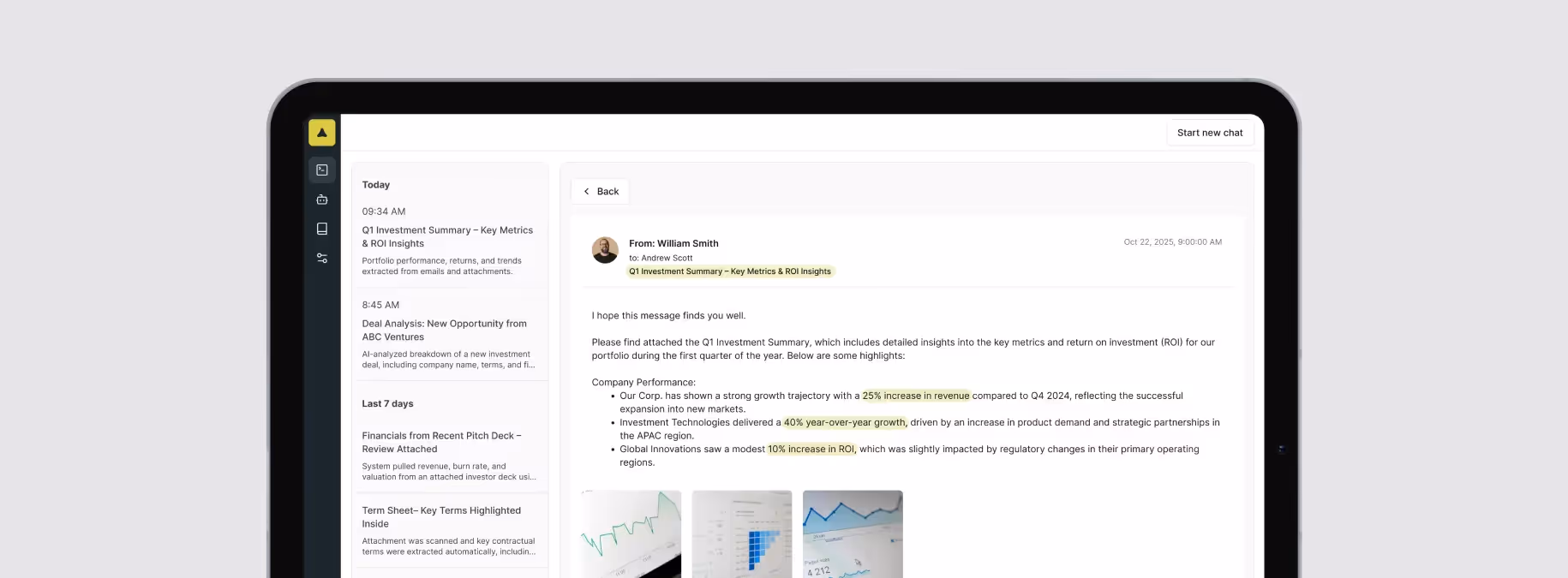 Uptech partnered with Presidio Investors to automate deal analysis and investment data processing using OCR, LLMs, and cloud-native workflows on Azure and AWS. By integrating AI directly into their CRM, the team freed analysts from repetitive tasks and continues rolling out further automation improvements since October 2023.