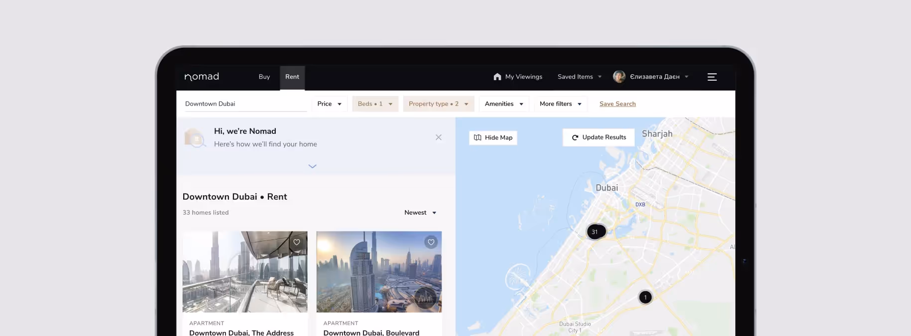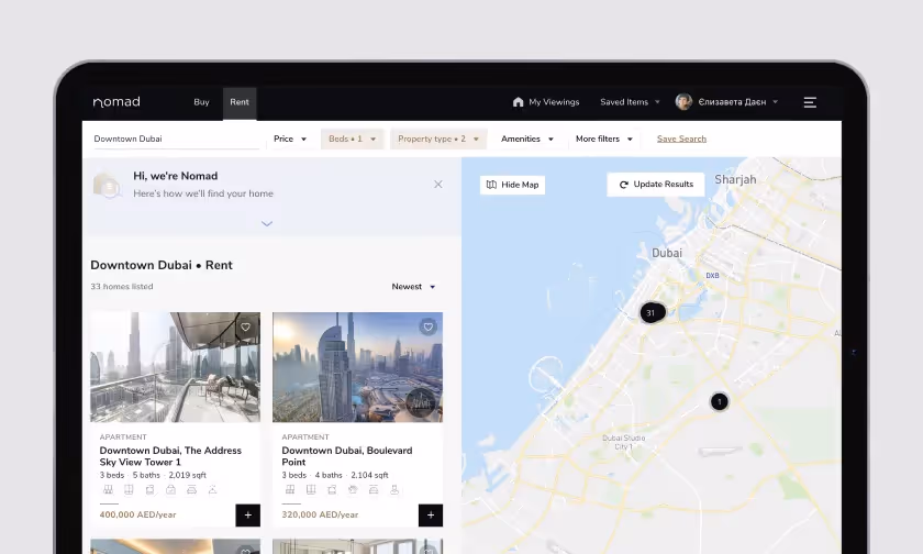 Nomad is a digital platform that simplifies buying and renting homes in Dubai. Nomad turns a traditionally complicated offline routine into a smooth online experience.