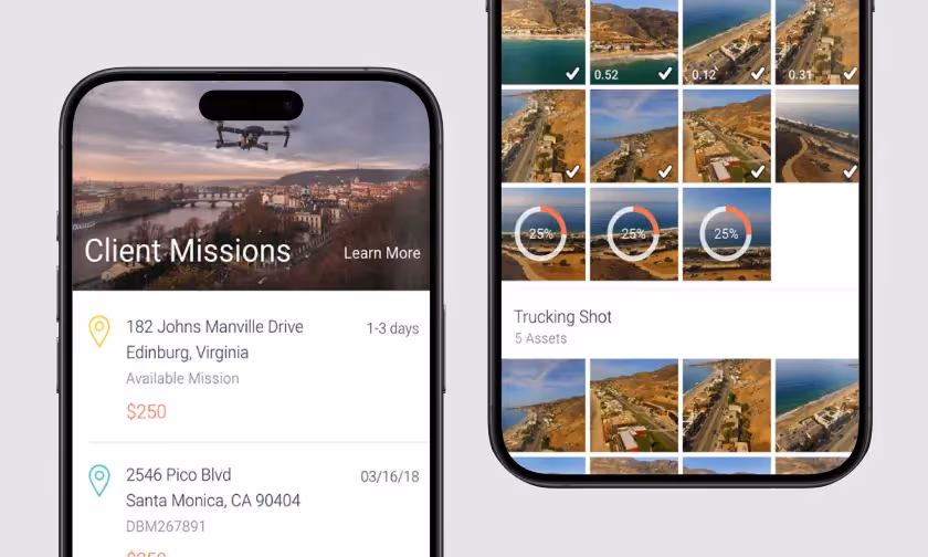 Dronebase provides fast, affordable, and reliable aerial images and videos from the air so their customers can make better-informed, real-time decisions about their most critical assets. Uptech integrated DJI API and built reliable iOS and Android apps so that operators can provide professional drone services at a fraction of the cost and time.