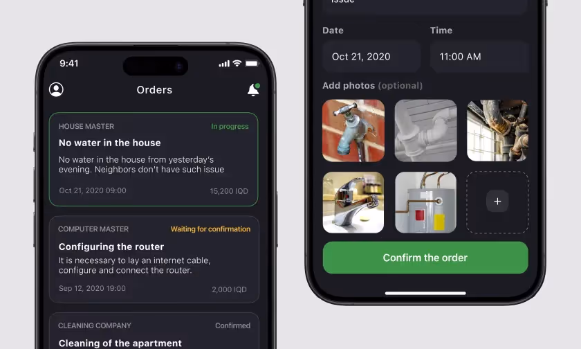 On-demand service platform with a range of professionals in Iraq. It connects professional service providers with people who need help with their household or business tasks.